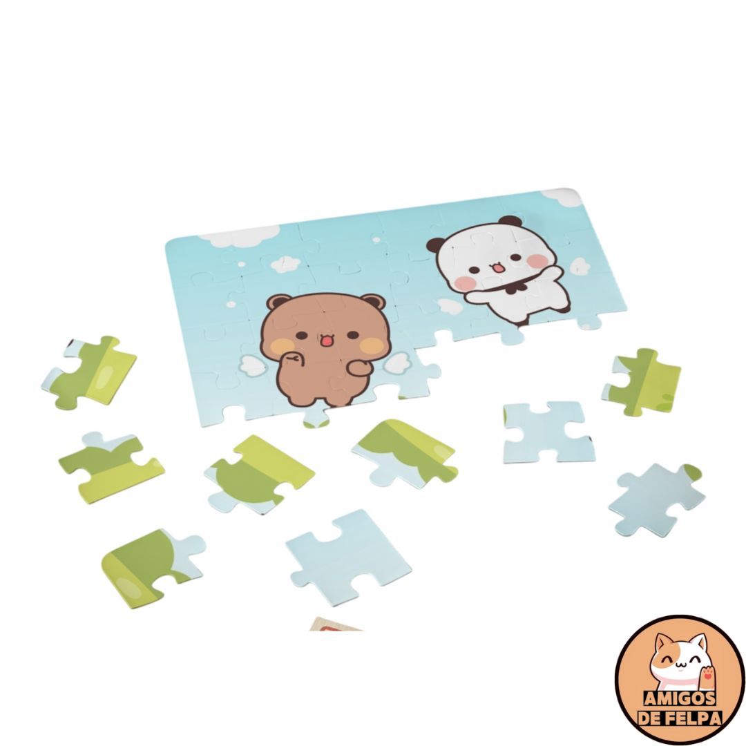 ¡Diviértete armando este adorable puzzle de Bubu y Dudu, los tiernos ositos de amor! Con 30 piezas, este rompecabezas es perfecto para estimular la memoria y la concentración, mientras disfrutas creando una bella imagen